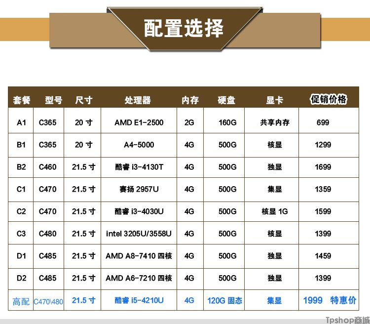 • 型号: C470(I3-4010U/4G/1T/2G独显/21.5LED屏)